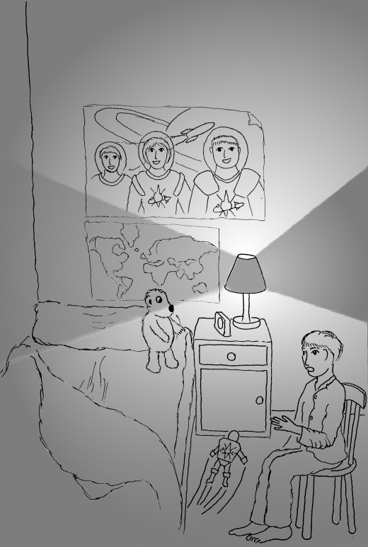 Alex cleared her throat and said, “When I grow up I want to be an astronaut. If I was an astronaut, I would go to the launch pad at eight o’clock in the morning and blast off to work in my rocket. I work in a space station. I get there at nine o’clock. There is not much traffic in the way, although I have to look out for meteor showers. The space station is like an ordinary station, but in space, so everything floats around.”